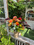 Harvest Blooms is designed in our signature natural, whimsical style. Varying shades and hues of a warm orange, burgundy, brown, yellow, etc. give this arrangement a cozy and comforting essence.